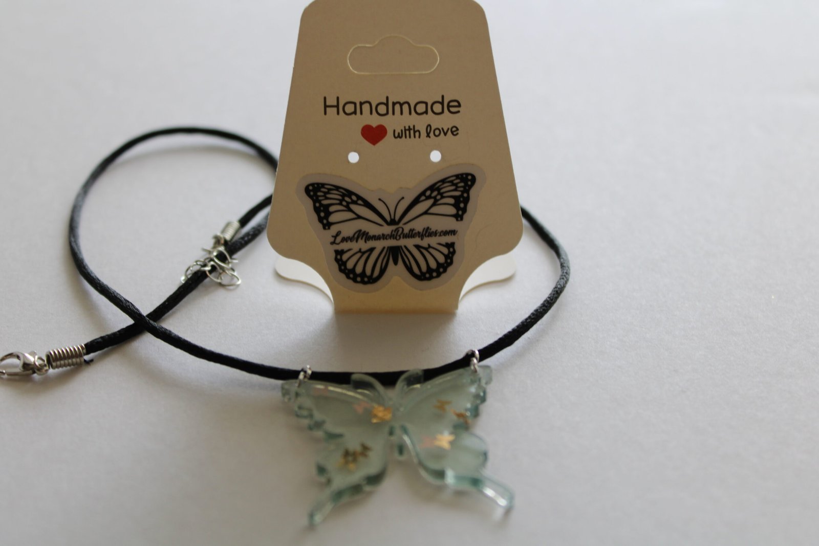 Be the first to review “Handmade light blue resin butterfly necklace”